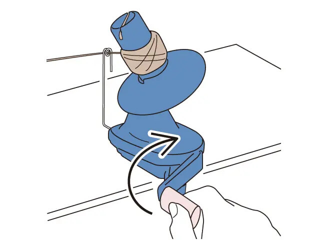 - 핸들을 돌려 실을 감다.