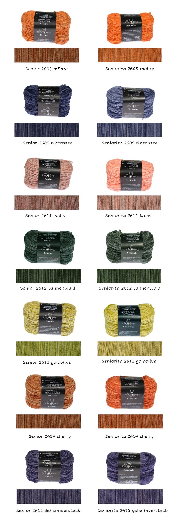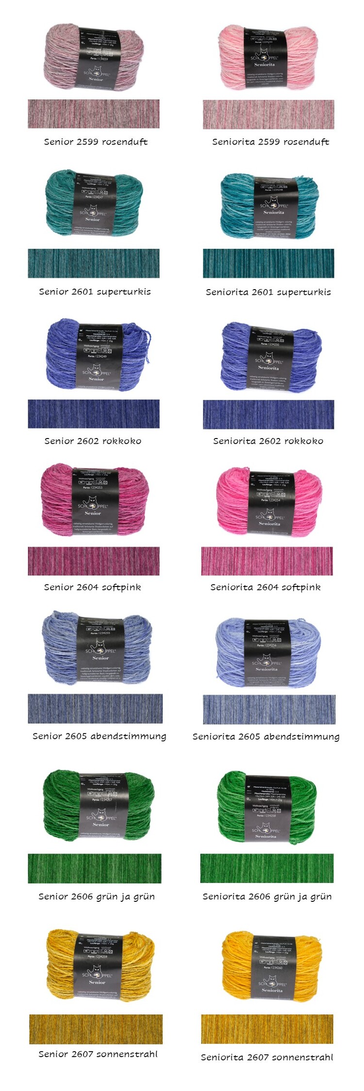 각 상자에는 6가지 Senior 색상과 6가지 Seniorita 색상을 포함하여 총 12개의 실이 들어 있습니다.