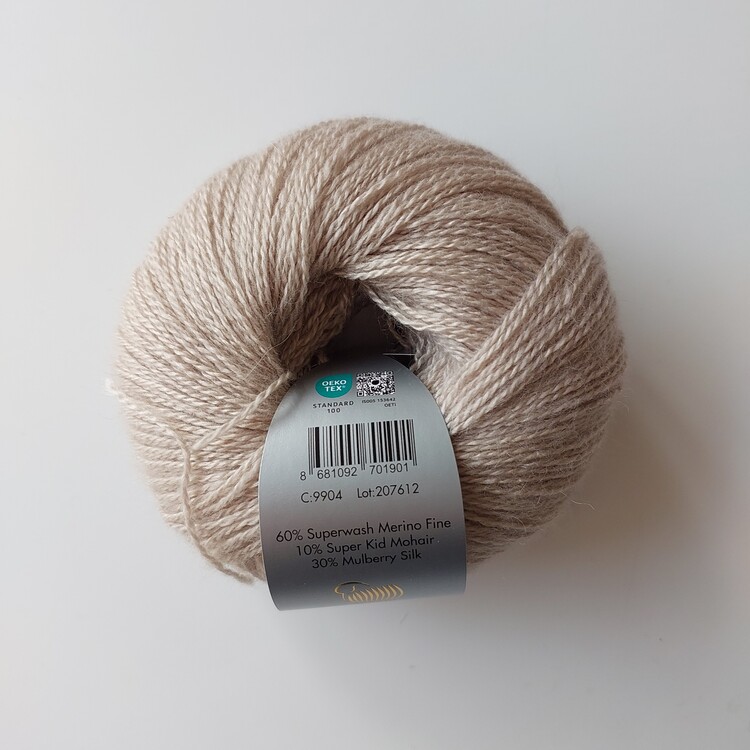 - 60 %Superwash Merino Fine Wool, 10 %Superkid Mohair, 30 %Mulberry Silk