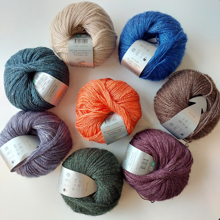 Gazzal Exclusive는 실크 함량이 30%인 고급 실로, 모든 뜨개질 패턴에 사용할 수 있으며,