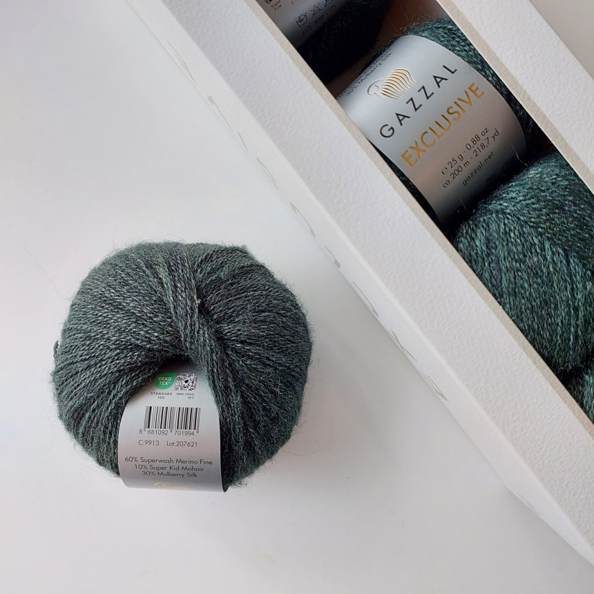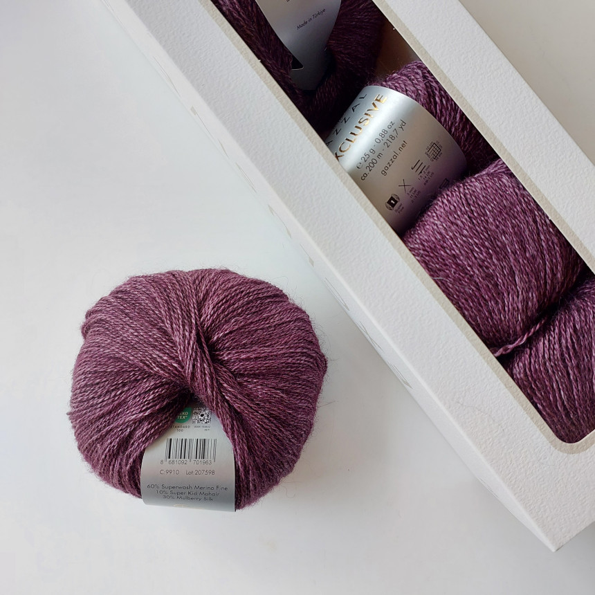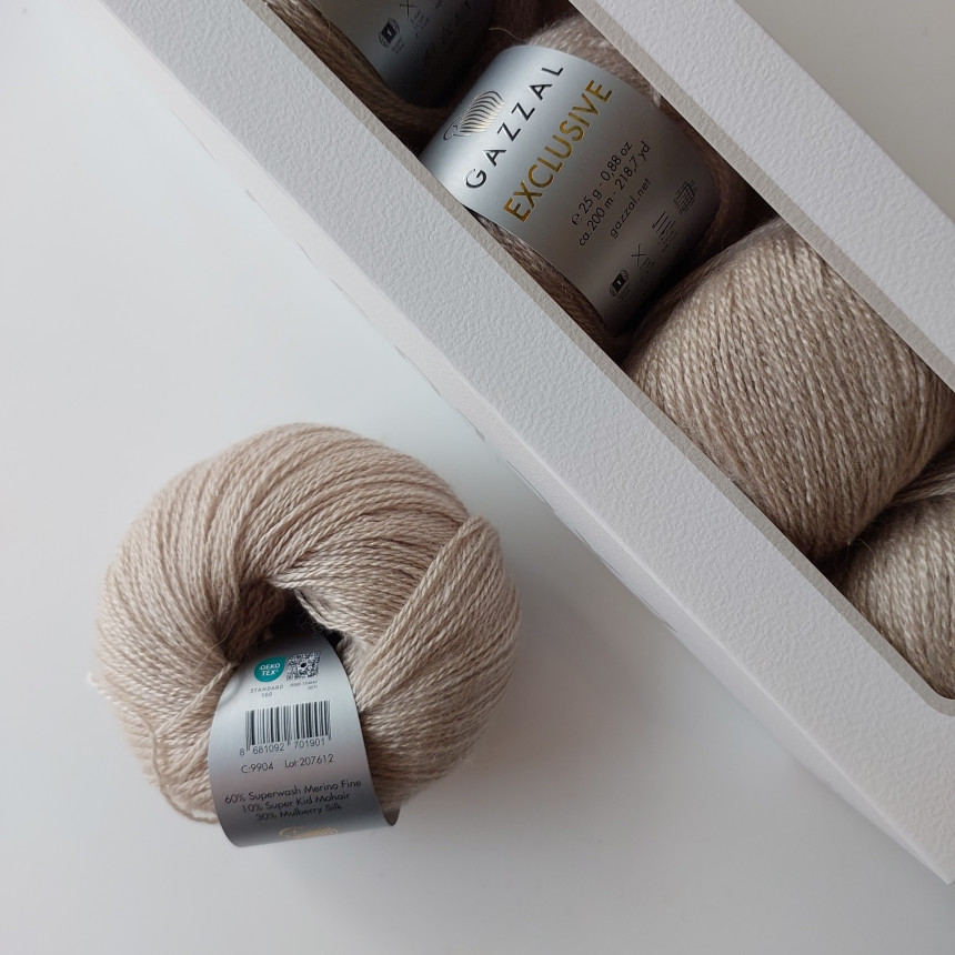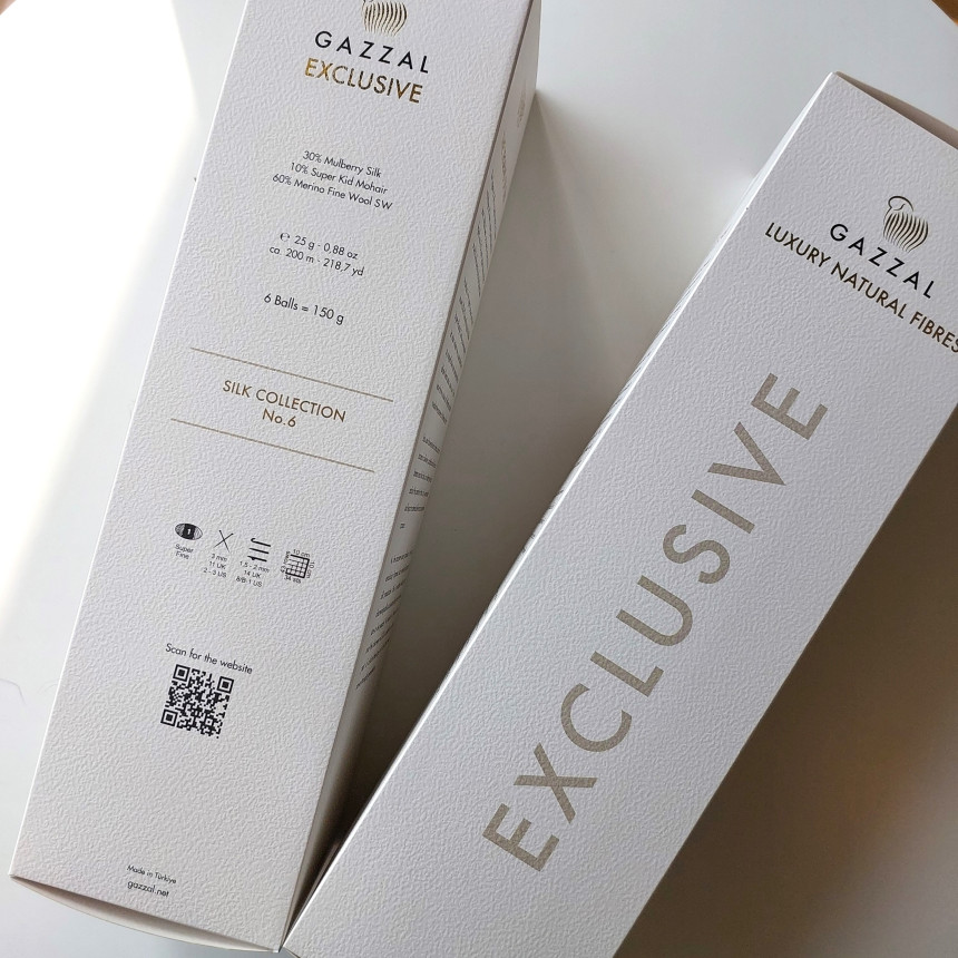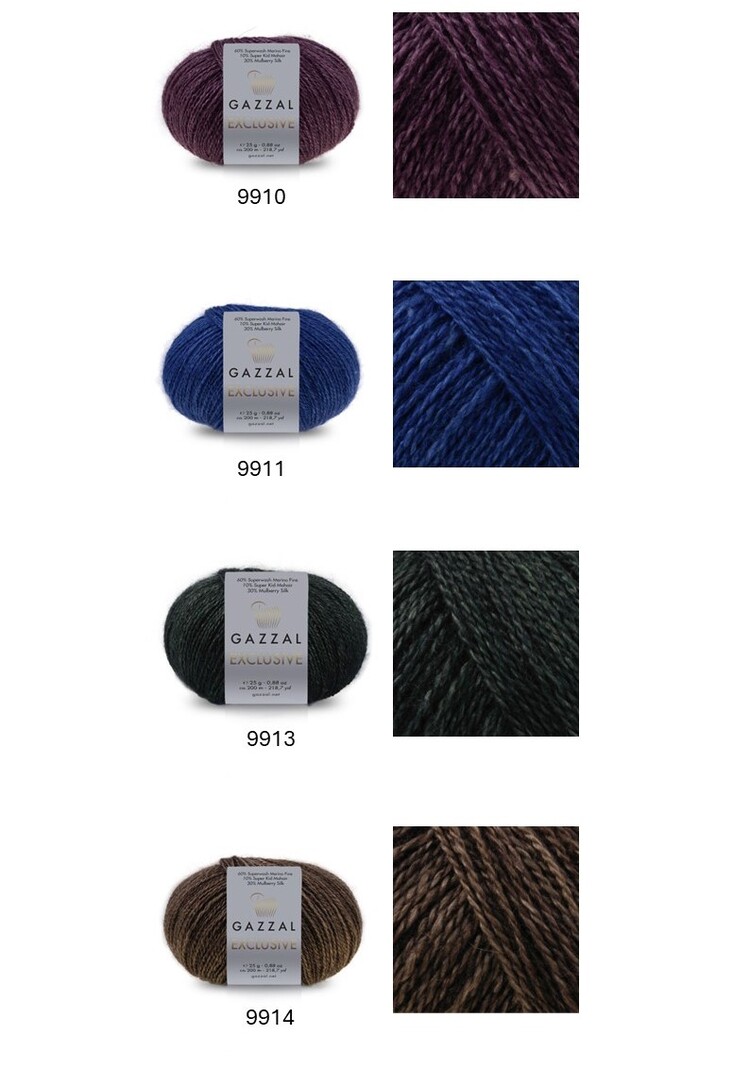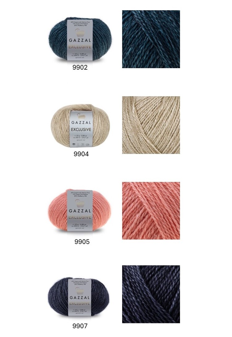 Gazzal Exclusive는 실크 함량이 30%인 고급 실로, 모든 뜨개질 패턴에 사용할 수 있으며,