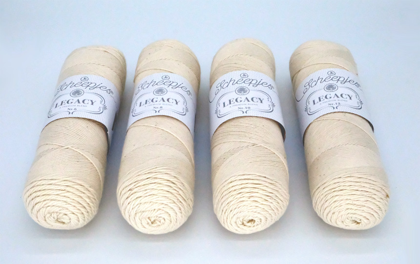 Scheepjes Legacy is a premium blend of 100% cotton yarn with a natural, undyed, matte finish. It is soft, breathable, and has superior durability due to its higher density and twist compared to regular cotton yarns.