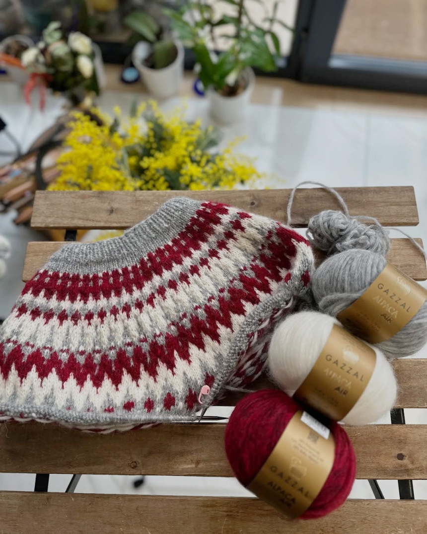 가잘 알파카 에어 + 가잘 키드 모헤어 편물 @la.na.knit
