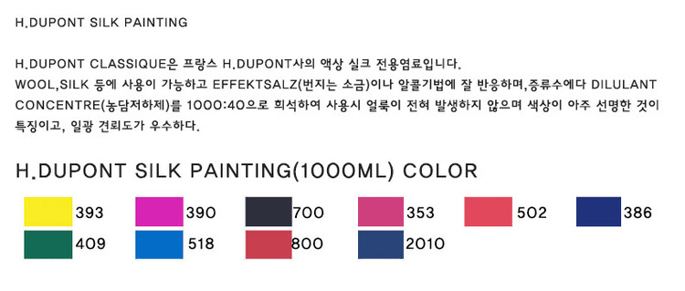 [H.DUPONT] 듀폰 실크 염료 1000ml (액상) 대용량버전 알콜기법 울 실크 염색 원단염색 선명한염색