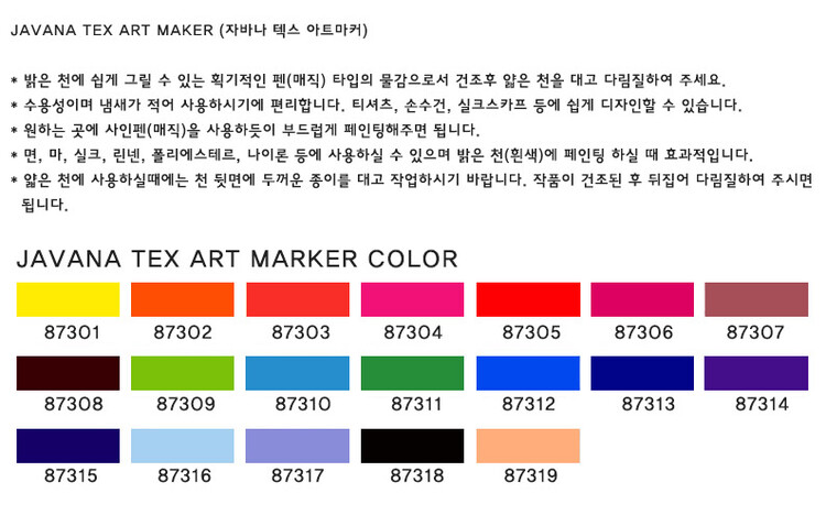[JAVANA] 자바나 아트마커 펜타입 염료 Art Marker 패브릭염료 섬유염료 천연염료 펜타입