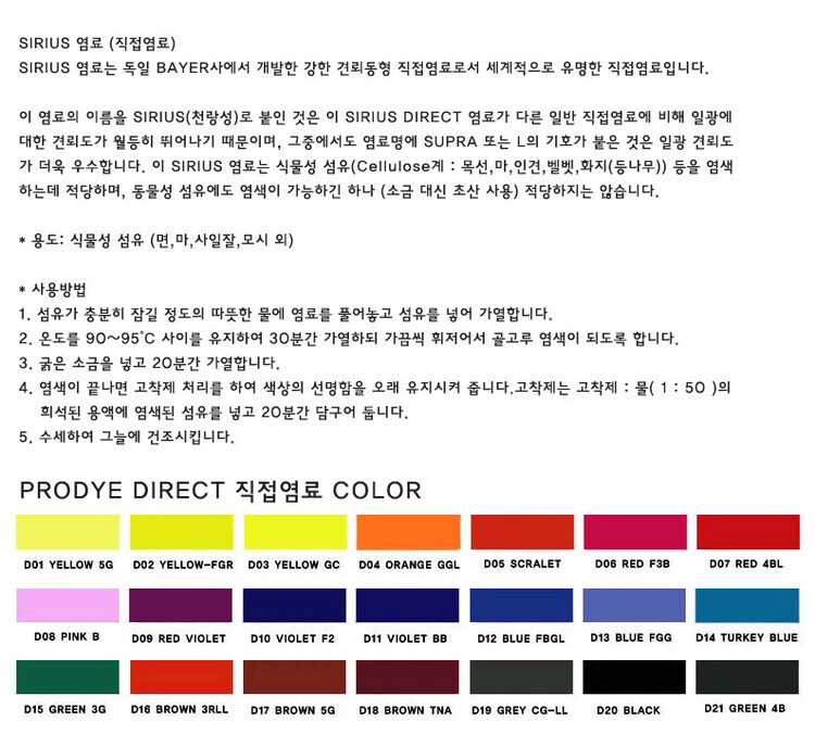 [PRODYE] 프로다이 직접염료 21색 세트