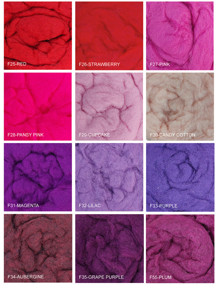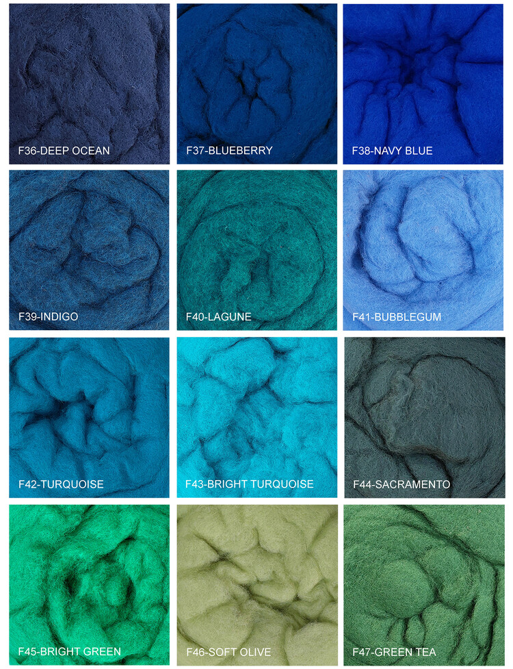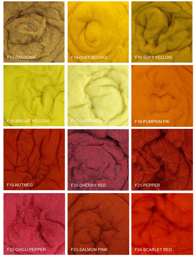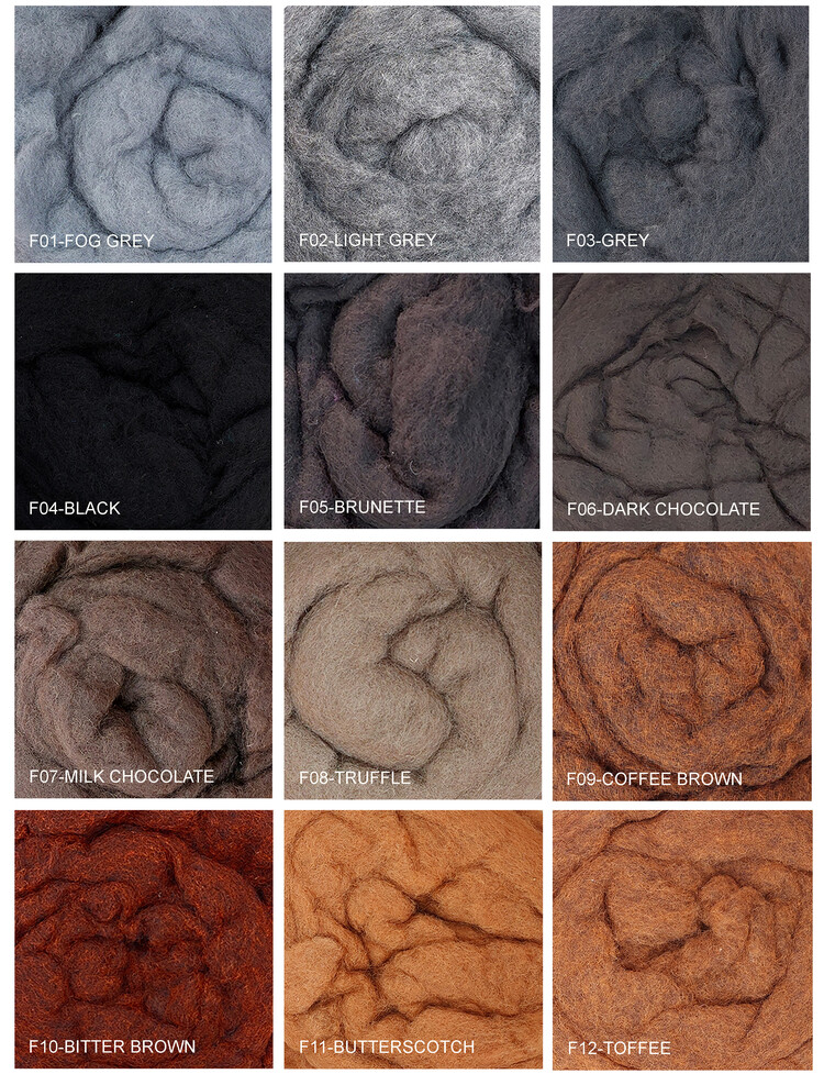 This is certified felt-specific wool verified for safety by the Global Organic Textile Standard (GOTS). It's non-toxic and safe for children to use, optimized for creating works with wet felting or needle felting. This felt-specific wool has the advantage of being 3-4 times faster in production speed compared to conventional wool tops when making needle-felted works. Try making your desired felt works quickly with this certified felt-specific wool.